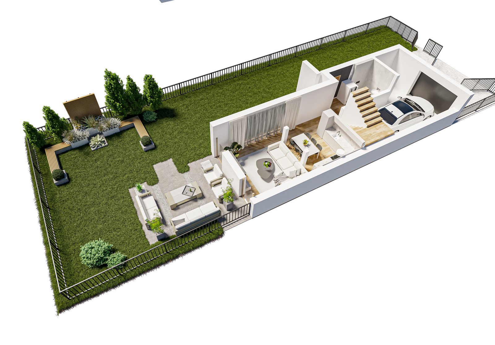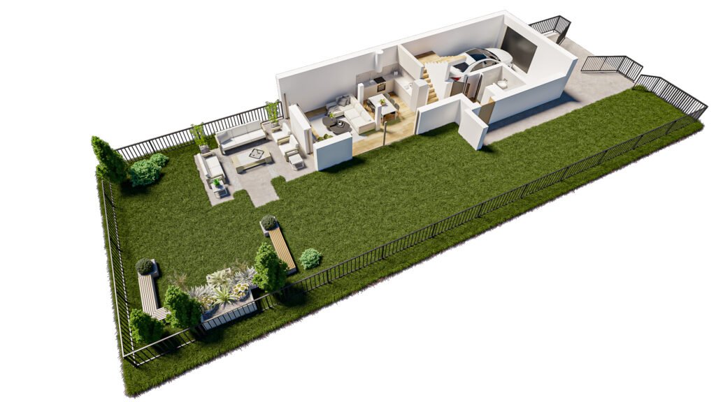 Inwestycja obejmuje 5 nowoczesnych segmentów o powierzchniach od 120 do 137 m². Przemyślana architektura i funkcjonalne układy zapewniają wygodną przestrzeń do codziennego życia.