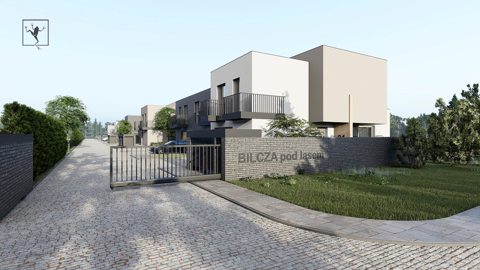 ogrodzony teren z bramą automatyczną.